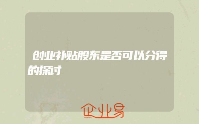 - 创业补贴股东是否可以分得的探讨