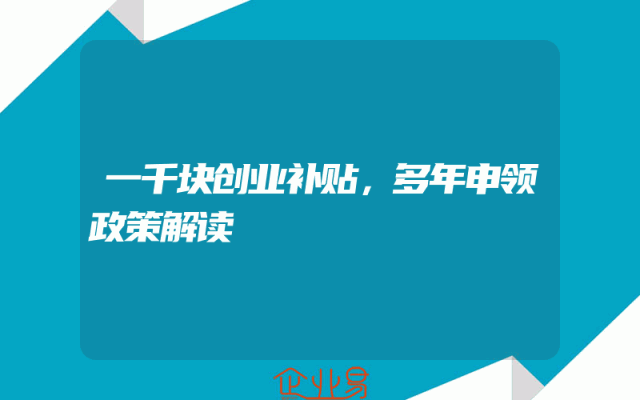 - 一千块创业补贴,多年申领政策解读