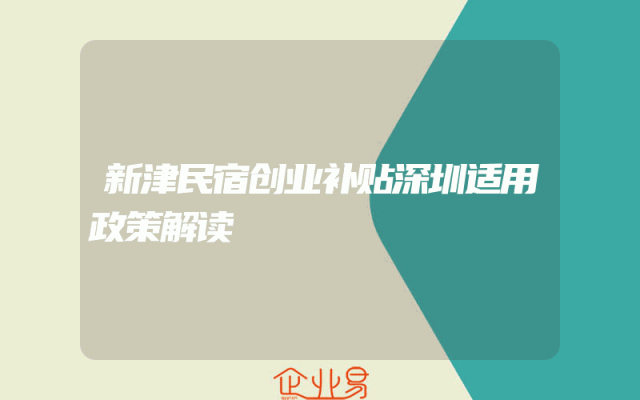 - 新津民宿创业补贴深圳适用政策解读