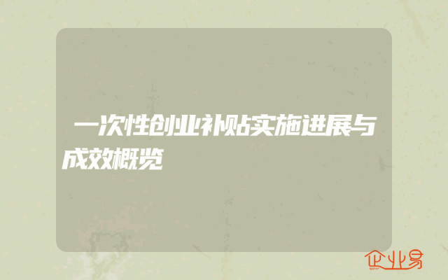 - 一次性创业补贴实施进展与成效概览