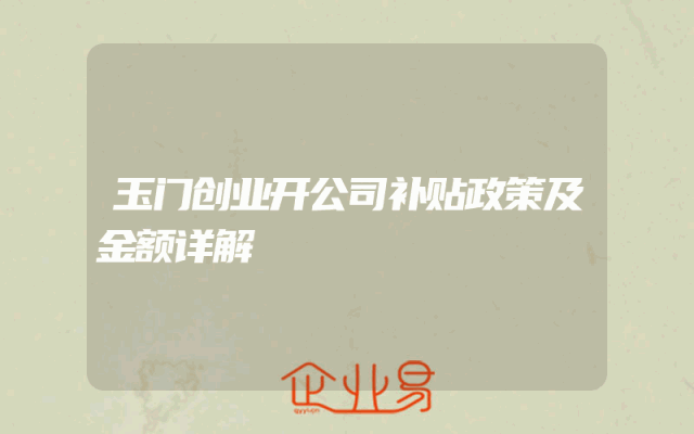- 玉门创业开公司补贴政策及金额详解