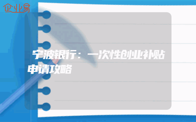 - 宁波银行:一次性创业补贴申请攻略