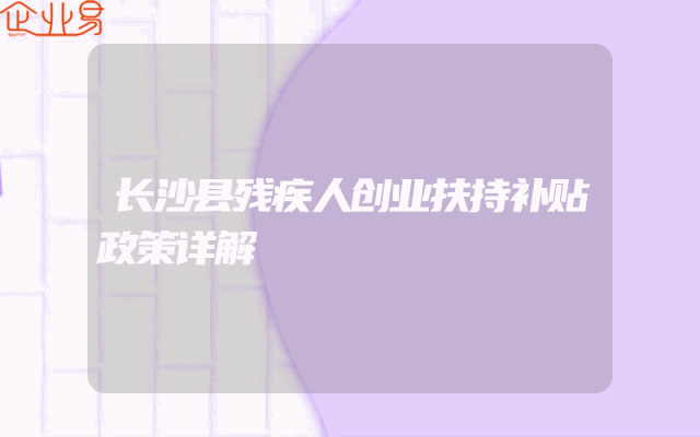 - 长沙县残疾人创业扶持补贴政策详解