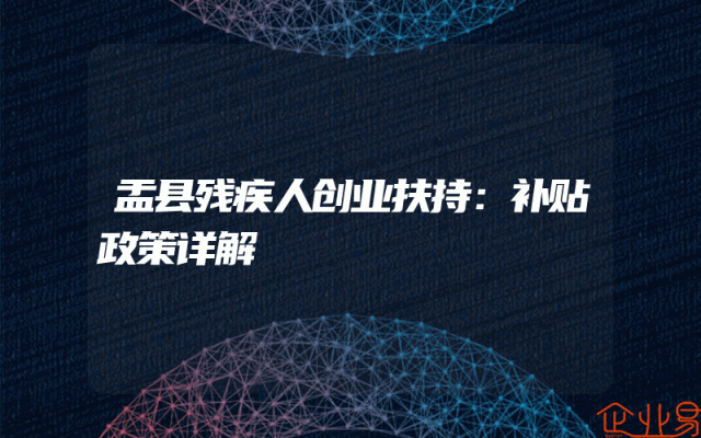 - 盂县残疾人创业扶持:补贴政策详解