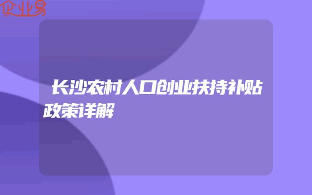 - 长沙农村人口创业扶持补贴政策详解