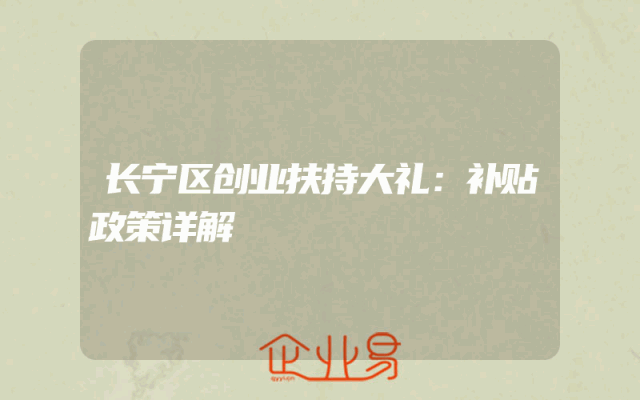 - 长宁区创业扶持大礼:补贴政策详解