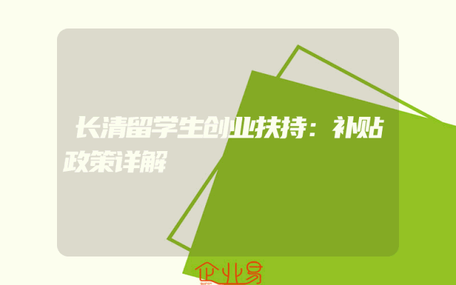 - 长清留学生创业扶持:补贴政策详解