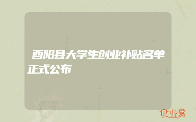 - 酉阳县大学生创业补贴名单正式公布