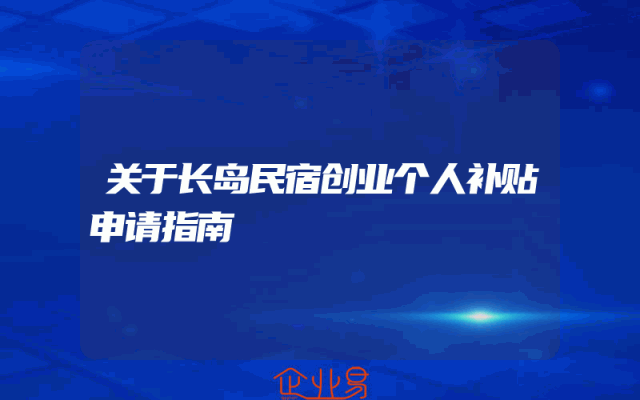 - 关于长岛民宿创业个人补贴申请指南