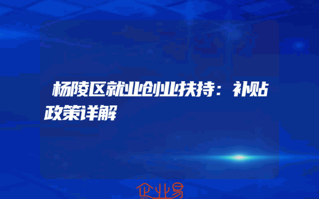 - 杨陵区就业创业扶持:补贴政策详解
