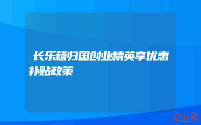 - 长乐籍归国创业精英享优惠补贴政策