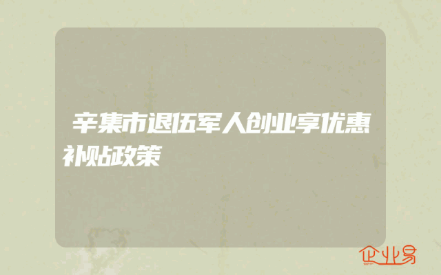 - 辛集市退伍军人创业享优惠补贴政策