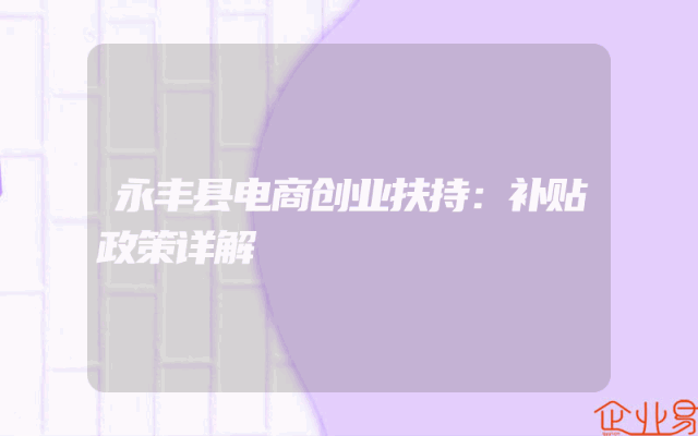 - 永丰县电商创业扶持:补贴政策详解