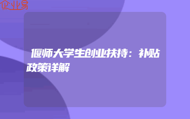 - 偃师大学生创业扶持:补贴政策详解