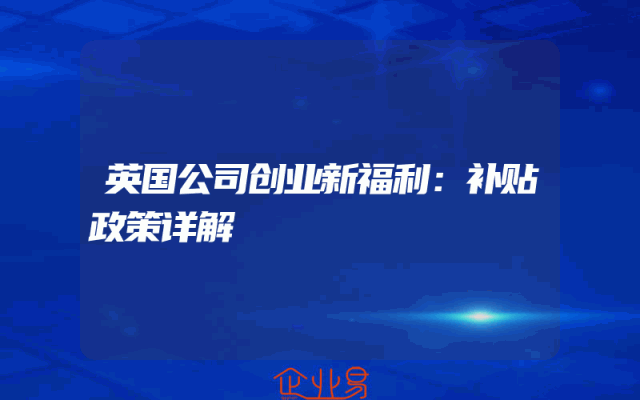 - 英国公司创业新福利:补贴政策详解一、英国创业补贴政策概述在英国,政府为了鼓励创新和创业,推出了一系列补贴政策,为新成立的公司提供重要的财政支持。这些补贴政策覆盖了多个领域,包括技术研发、员工培训、出口扩张等多个方面,为英国的公司创造了良好的