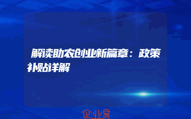 - 解读助农创业新篇章:政策补贴详解