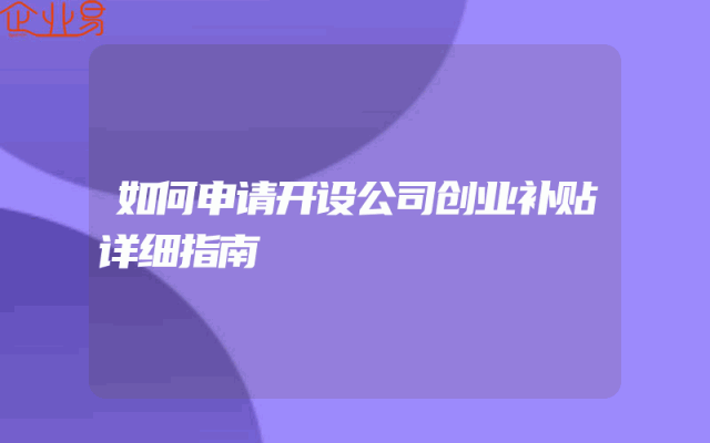 - 如何申请开设公司创业补贴详细指南