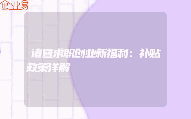 - 诸暨求职创业新福利:补贴政策详解一、诸暨市求职创业新环境概述随着经济的不断发展,诸暨市对于人才的吸引力日益增强。为鼓励更多优秀人才来诸暨求职创业,政府出台了一系列新的补贴政策。这些政策不仅为求职者提供了良好的就业环境,也为创业者提供了有力的