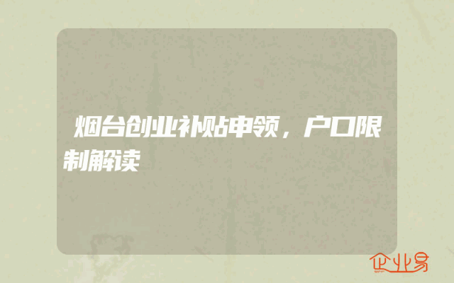 - 烟台创业补贴申领解读及户口限制细节分析烟台创业补贴申领指南烟台作为山东省的重要城市,一直以来都鼓励和支持创新创业。为了激发市民的创业热情,烟台市政府推出了一系列的创业补贴政策。本文将重点解读其中的申领细节及户口限制。一、创业补贴政策概述烟台