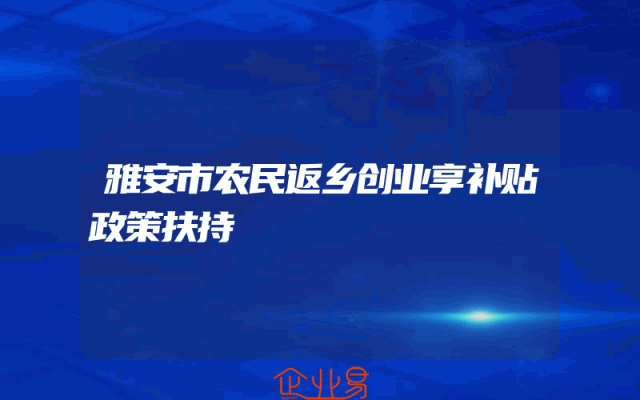 - 雅安市农民返乡创业享补贴政策扶持政策背景及意义近年来,雅安市积极鼓励农民返乡创业,为农村地区注入新的活力。随着国家对于乡村振兴战略的深入推进,雅安市政府出台了一系列补贴政策,扶持农民返乡创业,旨在促进农村经济发展和增加农民收入。这一政策的实