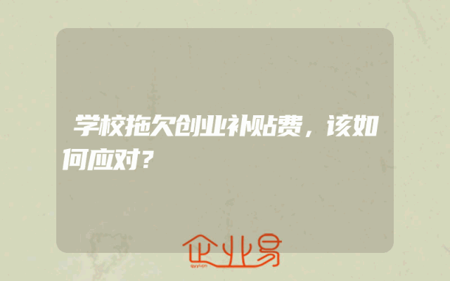 - 学校拖欠创业补贴费,该如何应对?了解拖欠原因首先,面对学校拖欠创业补贴费的情况,我们需要冷静理智地了解拖欠的具体原因。是因为学校财务紧张暂时无法拨款,还是因为手续繁琐导致处理速度缓慢?亦或者是由于我们的申请材料存在问题,导致审核延误?只有明