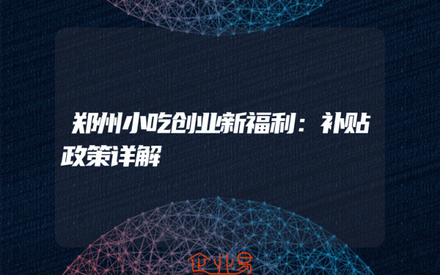- 郑州小吃创业新福利:补贴政策详解