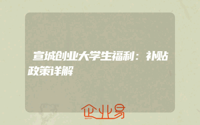 - 宣城创业大学生福利:补贴政策详解