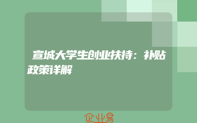 - 宣城大学生创业扶持:补贴政策详解