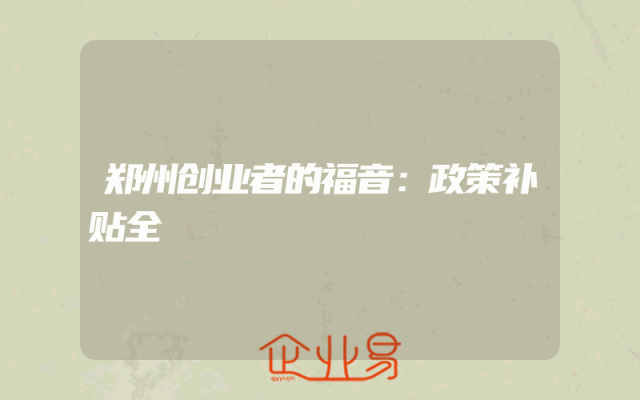 - 郑州创业者的福音:政策补贴全