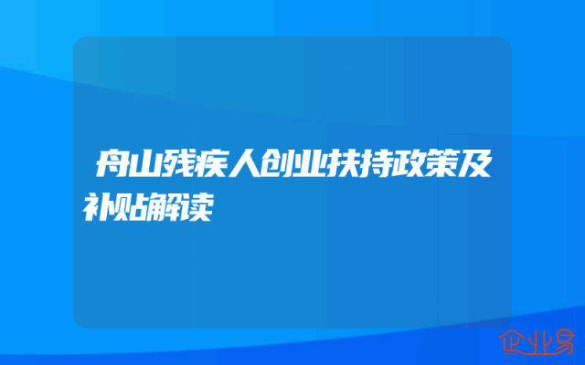 - 舟山残疾人创业扶持政策及补贴解读