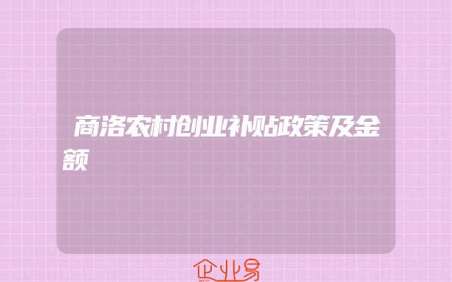 - 商洛农村创业补贴政策及金额