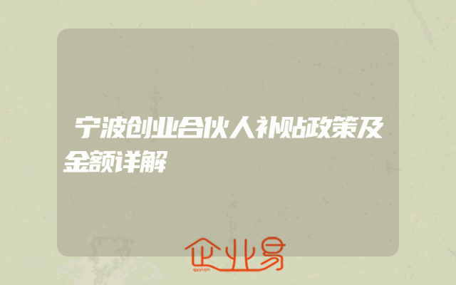 - 宁波创业合伙人补贴政策及金额详解一、宁波创业合伙人补贴政策概述宁波作为浙江省的重要城市,为鼓励创新创业,针对创业合伙人推出了一系列的补贴政策。这些政策旨在降低创业门槛,提高创业成功率,促进经济发展。接下来,我们将详细介绍这些补贴政策及其金额