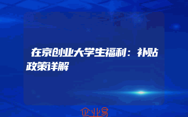 - 在京创业大学生福利:补贴政策详解