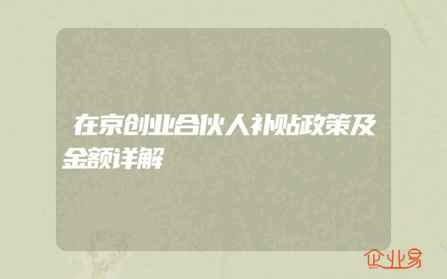 - 在京创业合伙人补贴政策及金额详解