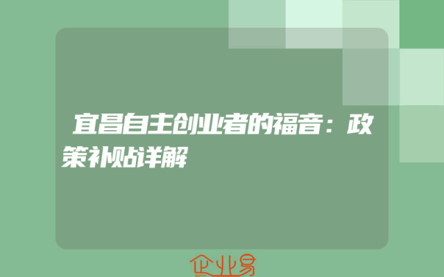 - 宜昌自主创业者的福音:政策补贴详解一、宜昌:创业的乐土宜昌,这座美丽的城市不仅是历史文化的积淀之地,如今也成为了创业者的乐土。随着政府对于创新创业的大力扶持,越来越多的有志之士选择在宜昌开启他们的创业之路。在这里,自主创业者们不仅能够享受到