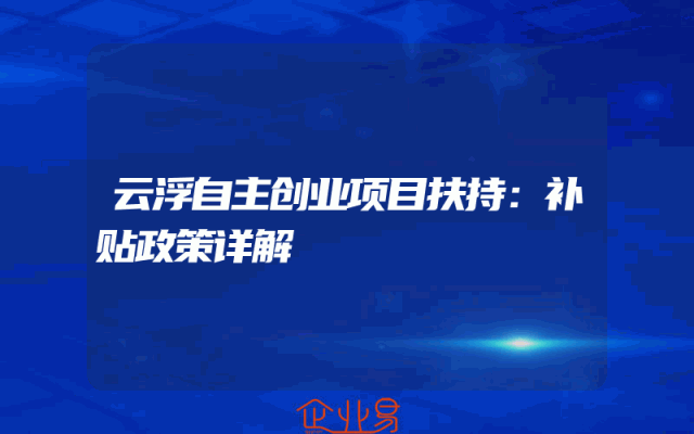 - 云浮自主创业项目扶持:补贴政策详解