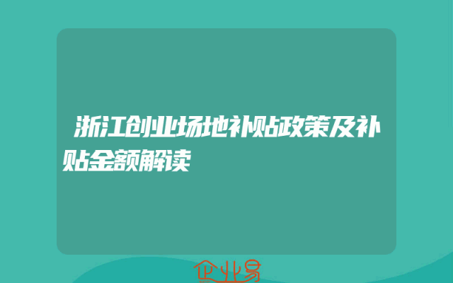 - 浙江创业场地补贴政策及补贴金额解读