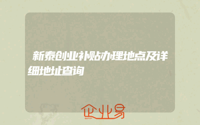 - 新泰创业补贴办理地点及公司地址详解