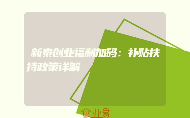 - 新泰创业福利加码:补贴扶持政策详解