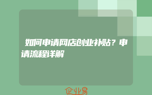 - 如何申请网店创业补贴?申请流程详解了解创业补贴政策随着互联网技术的飞速发展,越来越多的人选择开设网店进行创业。为了鼓励并支持这一领域的创业者,政府推出了一系列的网店创业补贴政策。想要成功申请这些补贴,首先需要深入了解相关政策的具体内容和申请
