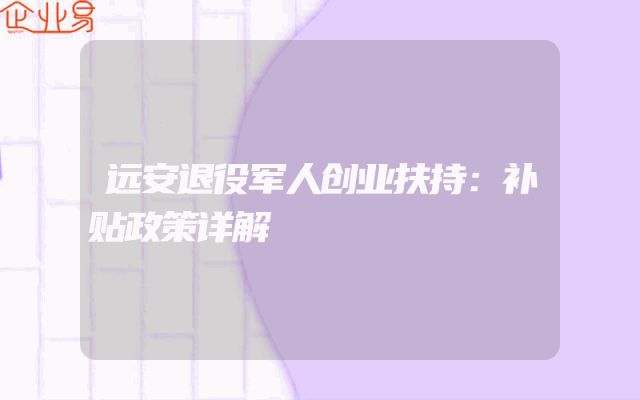 - 远安退役军人创业扶持:补贴政策详解