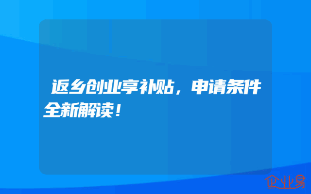 - 返乡创业享补贴,申请条件全新解读!