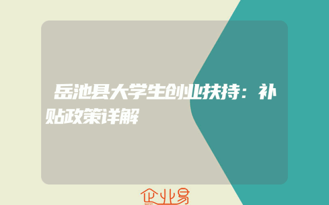 - 岳池县大学生创业扶持:补贴政策详解
