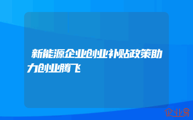 - 新能源企业创业补贴政策助力创业腾飞