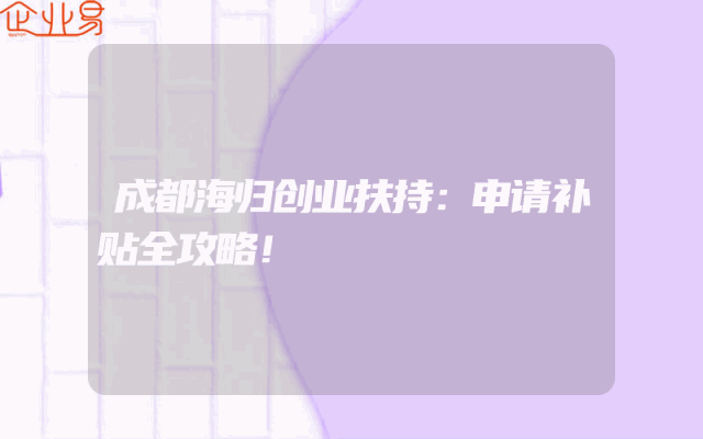 - 成都海归创业扶持:申请补贴全攻略一、成都海归创业扶持背景随着全球化进程的加快,越来越多的海外归国人员选择回到成都创业发展。成都市积极推行海归创业扶持政策,为海归创业者提供良好的创业环境和资金支持。了解并正确申请这些补贴,对于海归创业者在成都