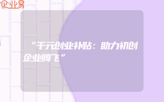 - 千元创业补贴:助力初创企业腾飞政策利好:创业补贴助力初创企业近年来,随着国家对于创新创业的大力扶持,各类创业补贴政策如雨后春笋般涌现。其中,“千元创业补贴”作为一种新型的补贴形式,为初创企业提供了宝贵的资金支持,成为创业者追逐梦想的助推器。