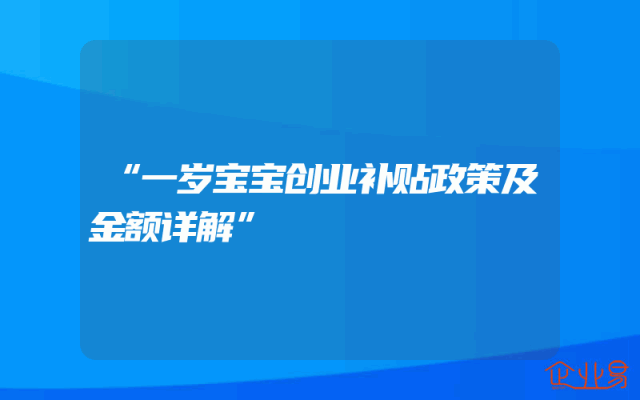- 一岁宝宝创业补贴政策及金额详解一岁宝宝的创业环境与政策背景随着社会的发展和进步,越来越多的年轻家庭开始重视儿童早期教育和培养。在这样的背景下,针对一岁宝宝的创业补贴政策应运而生。这样的政策旨在鼓励家庭为孩子创造良好的成长环境,培养孩子们的创