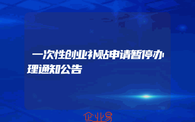 - 一次性创业补贴申请暂停办理通知公告关于一次性创业补贴申请暂停办理的通知公告尊敬的各位创业者及社会各界人士:为进一步优化完善创业扶持政策,响应广大创业者的需求和反馈,政府部门经过深入调研和综合评估,现决定对一次性创业补贴申请流程进行调整与优化