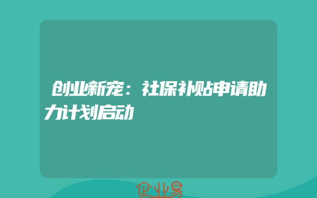 - 创业新宠:社保补贴申请助力计划启动