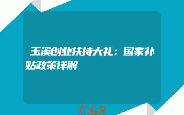 - 玉溪创业扶持大礼:国家补贴政策详解